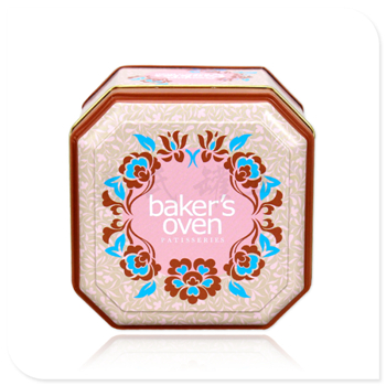 此款曲奇餅干八角罐子為三片罐,外卷線天地蓋設計,材質為0.23mm鍍錫馬口鐵制成。是一款熱銷的定制型金屬包裝盒,同時你可選擇除馬口鐵外的磨砂鐵,進行制作。鐵盒印刷為膠印方式,單面四色,內(nèi)外涂布水性光油,足以提升鐵盒的整體金屬質感。