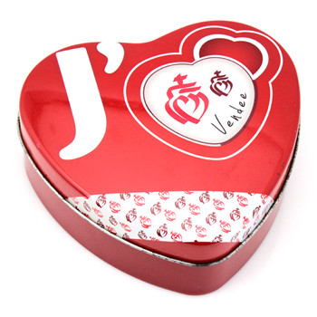 該款心形糖果鐵盒喜糖禮罐采用0.23mm鍍錫馬口鐵制作,客戶可根據(jù)自身需求,選擇0.23-0.28mm的馬口鐵/磨砂鐵制作,若選擇磨砂鐵制作鐵盒可使得材質表面有強烈的沙礫效果,在觸感上會變得更加有感覺。